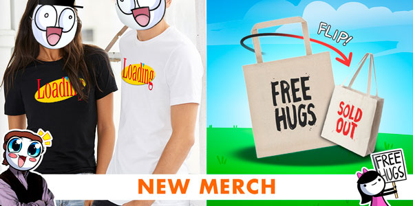 Added some new things to the store! A shirt about nothing, an updated version of everything will be okay, and the first everĀ tote bag! It’s a special DOUBLE-SIDED tote bag (fancy I know) based on the FREE HUGS comic.