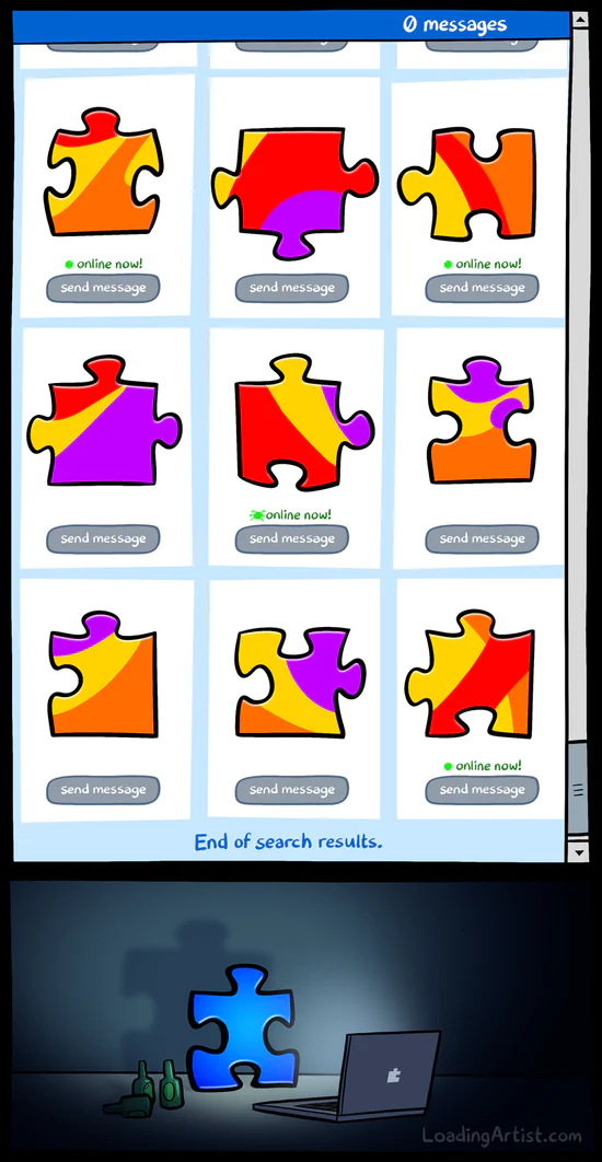 Bit different this week! I believe this is the only Loading Artist comic I’ve done that doesn’t have a face in it (EDIT: Oops, forgot about Treenagers! Thanks Dantae! (And Salty Tears! Thanks Bress!)). Also, the new site update (some tweaks and a couple additions) should go live sometime before the next comic. I’ll write a post about it when it does! Cheers guys!